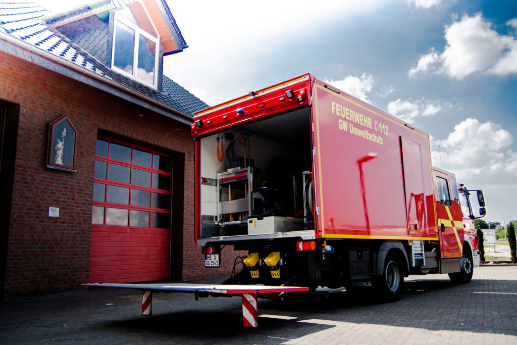 So steht z.B. der Gerätewagen Umweltschutz am Standort in Stahe und der Einsatzleitwagen in Birgden.
